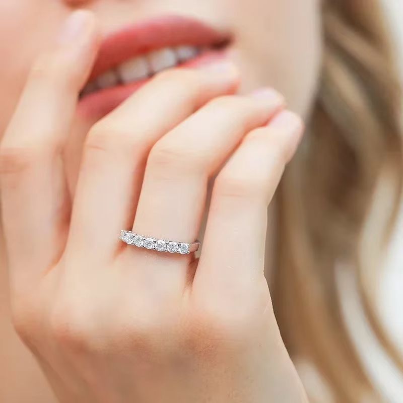 Full Moissanite Ring for Women S925 Sterling Silver with White Gold Plated Diamond Wedding Bridal Band Rings Fine Jewelry