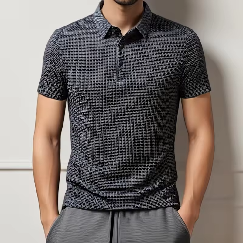 New Men's Business Casual Short Sleeved Bone Flower Solid Color POLO Shirt Fashion Breathable Comfortable Summer Versatile Top