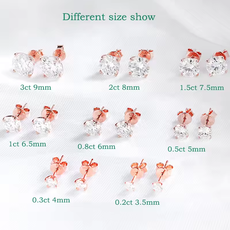 Elevate your jewelry collection with these exquisite moissanite stud earrings, crafted from pure 925 sterling silver with rose gold plating. Featuring lab-created moissanite stones ranging from 0.2 to 3 carats, these earrings deliver brilliant sparkle and exceptional clarity comparable to diamonds at a fraction of the cost. The classic stud design makes them versatile for everyday wear or special occasions, while the rose gold finish adds warmth and sophistication. Moissanite's superior durability ensures these earrings maintain their radiance for years to come. Perfect for weddings, anniversaries, or as a timeless gift for the woman who appreciates fine jewelry without compromise.