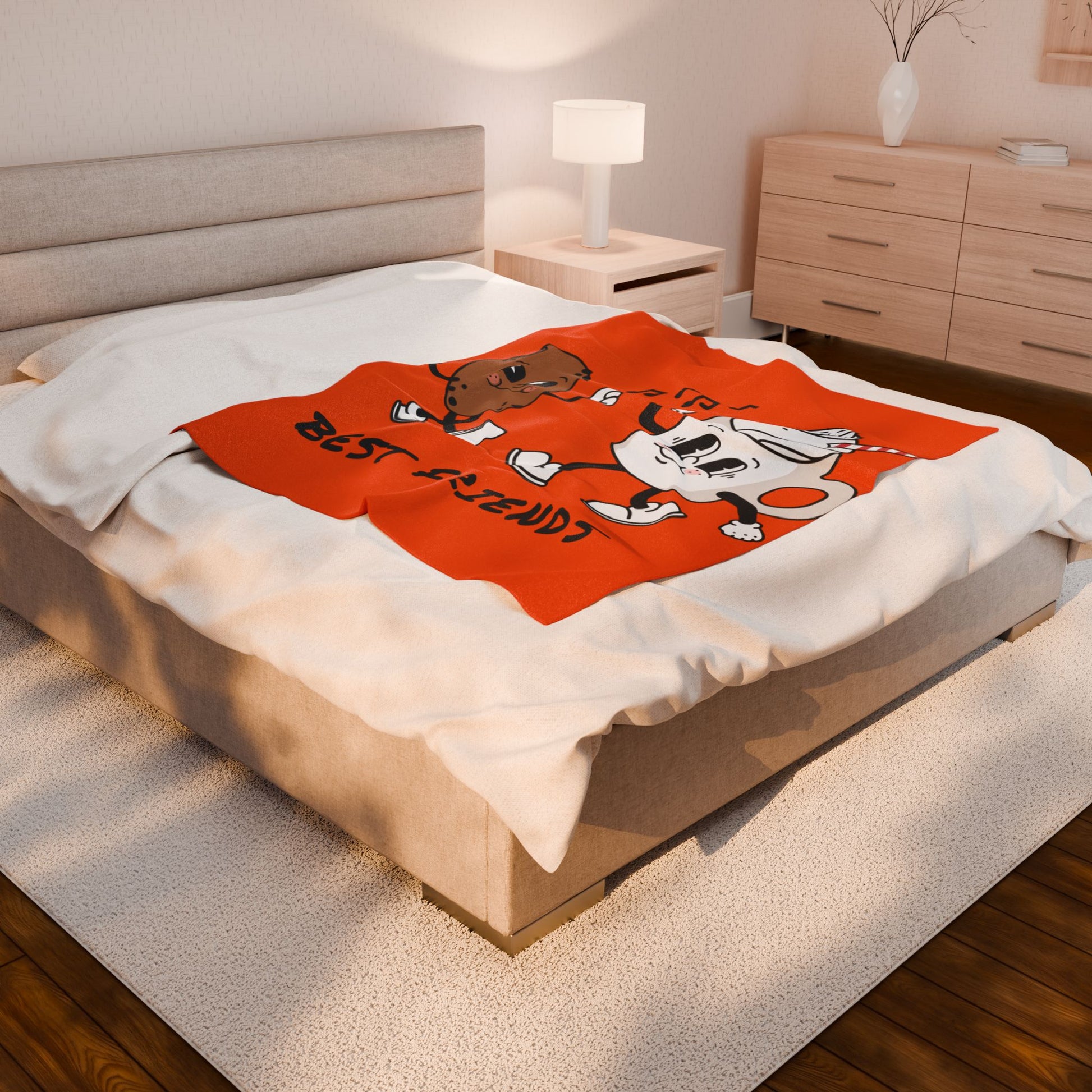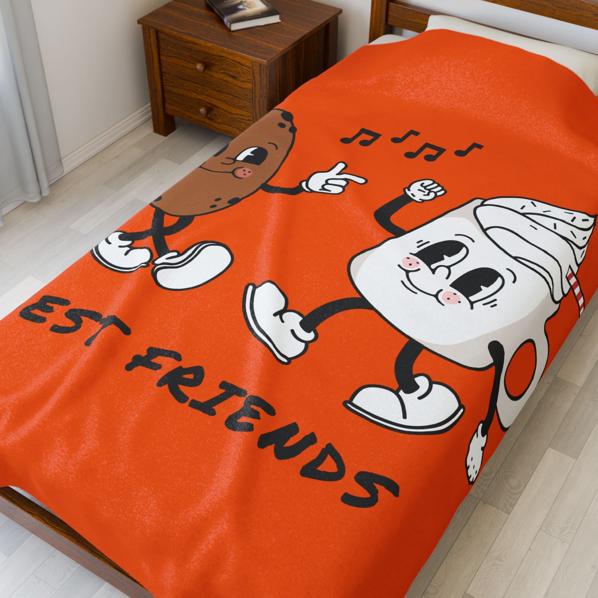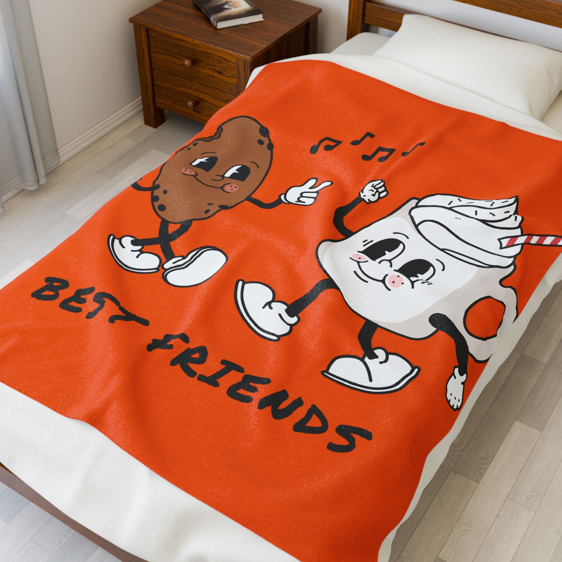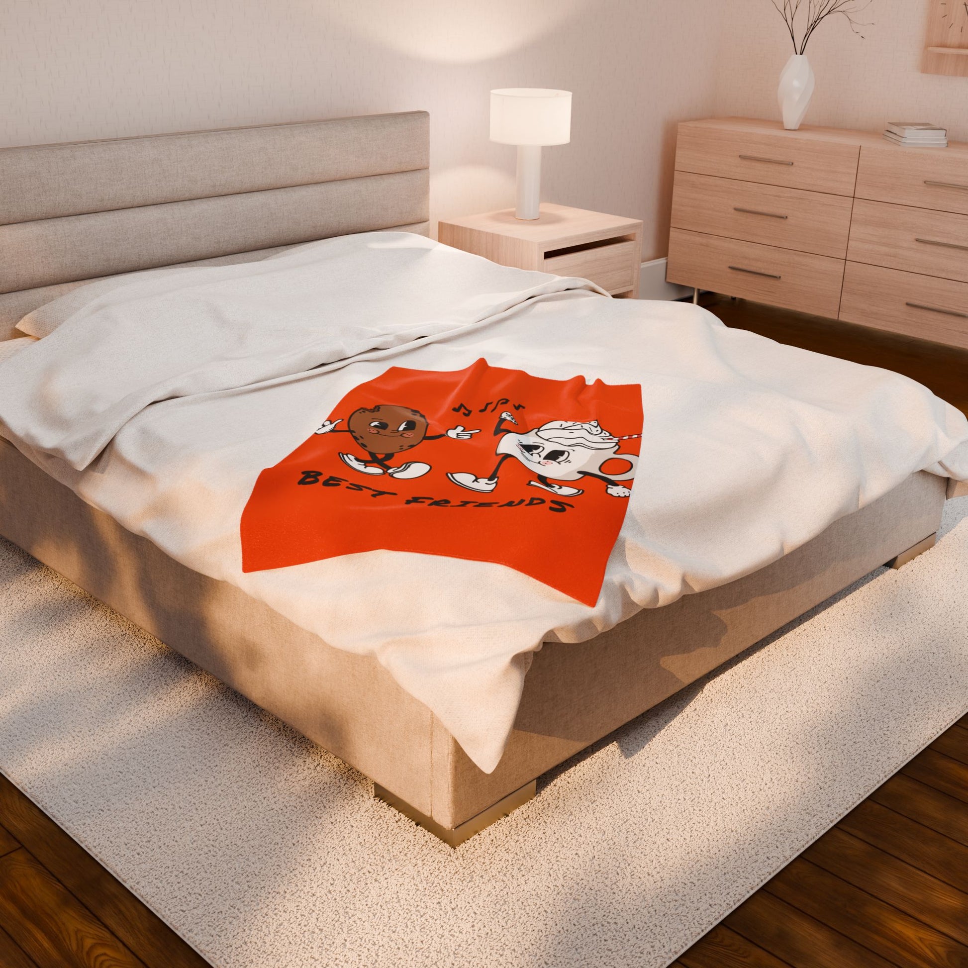 Plush Blanket — 'Best Friends' Cookie & Hot Cocoa Retro Design